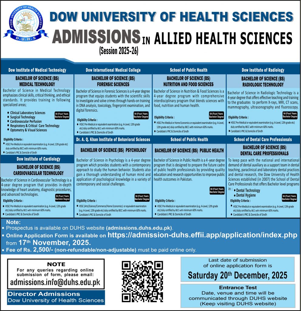 ADMISSIONS IN MEDICAL TECHNOLOGY – SESSION 2025-26