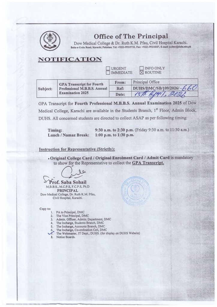 GPA Transcript of Fourth Professional M.B.B.S Annual Examination 2025