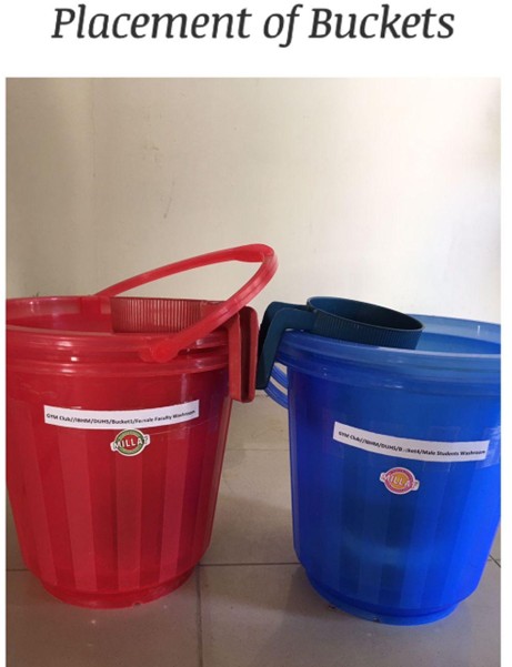 Suggestion by Janitorial Staff: Placements of water buckets in the washroom for usage when there’s unavailability of water.
