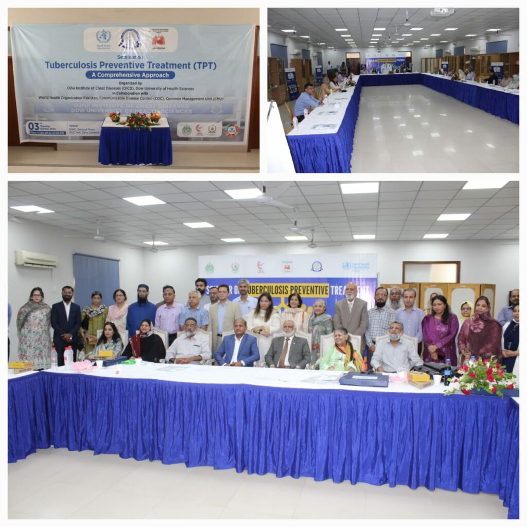 On October 3, 2024, the Ojha Institute of Chest Diseases (OICD), DUHS hosted a successful hybrid webinar on Tuberculosis Preventive Treatment (TPT) in collaboration with the World Health Organization (WHO), National TB Program, and Communicable Disease Control Sindh. The webinar brought together pulmonologists, infectious disease specialists, pediatricians, and healthcare leaders from across Pakistan.